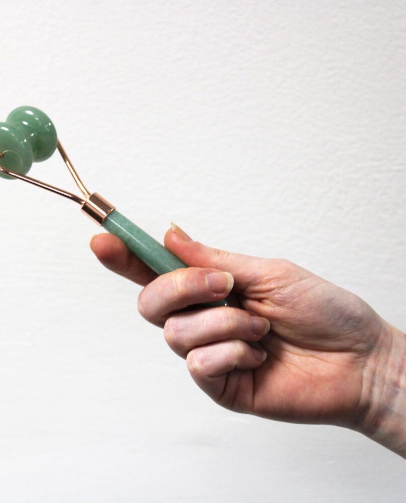 The Gemstone Face Roller is crafted from jade, quartz, sodalite or amethyst for positive energy. Each Gemstone Face Roller comes with a 100% cotton pouch