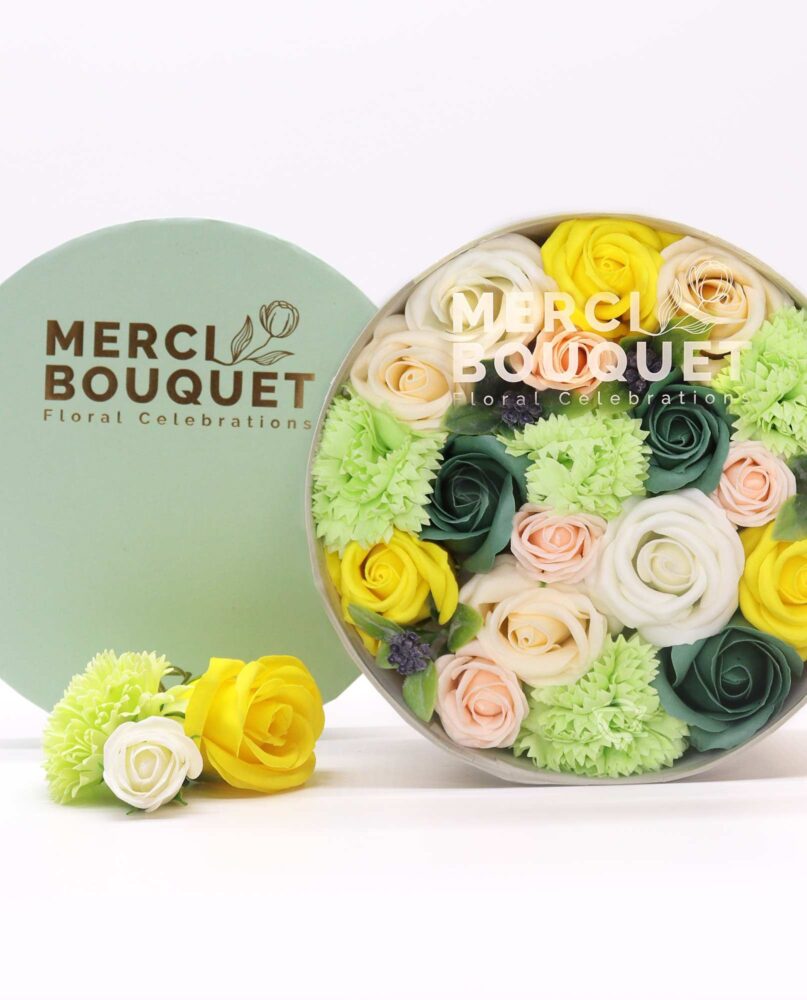 Soap Flower Gift Round Box – Spring Celebrations in Yellow & Greens