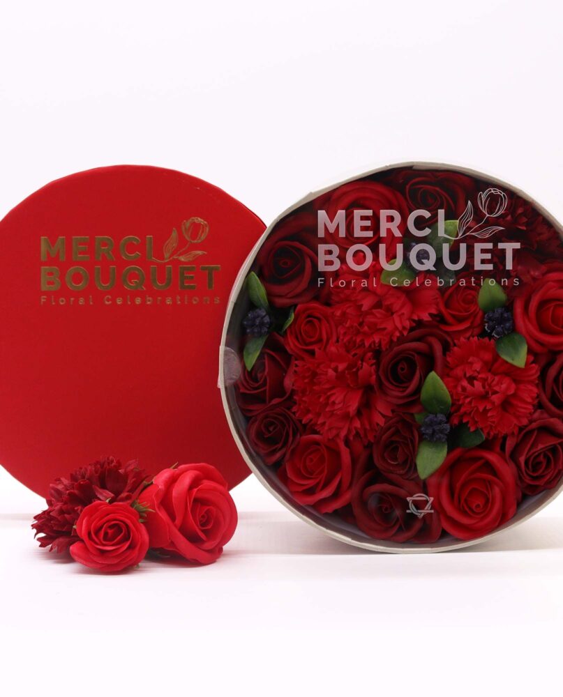 🌹 Classic Red Roses: Inside the round box, you'll find intricately crafted soap flowers that mimic the allure of real red roses. Their deep, rich colour symbolises love and passion.