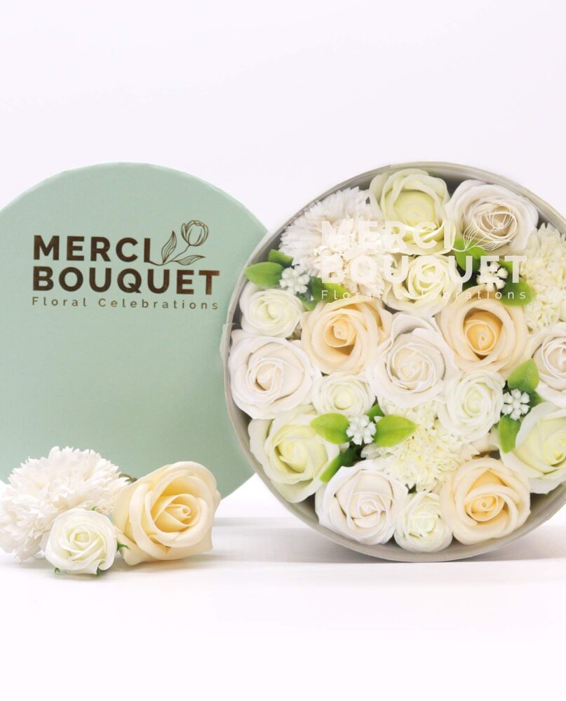 Make your gift-giving an unforgettable experience with Soap Flowers Round Box, in the exquisite "Wedding Blessings – White & Ivory" collection. Crafted with meticulous attention to detail, each soap petal embodies a blend of artistry and quality that sets it apart.