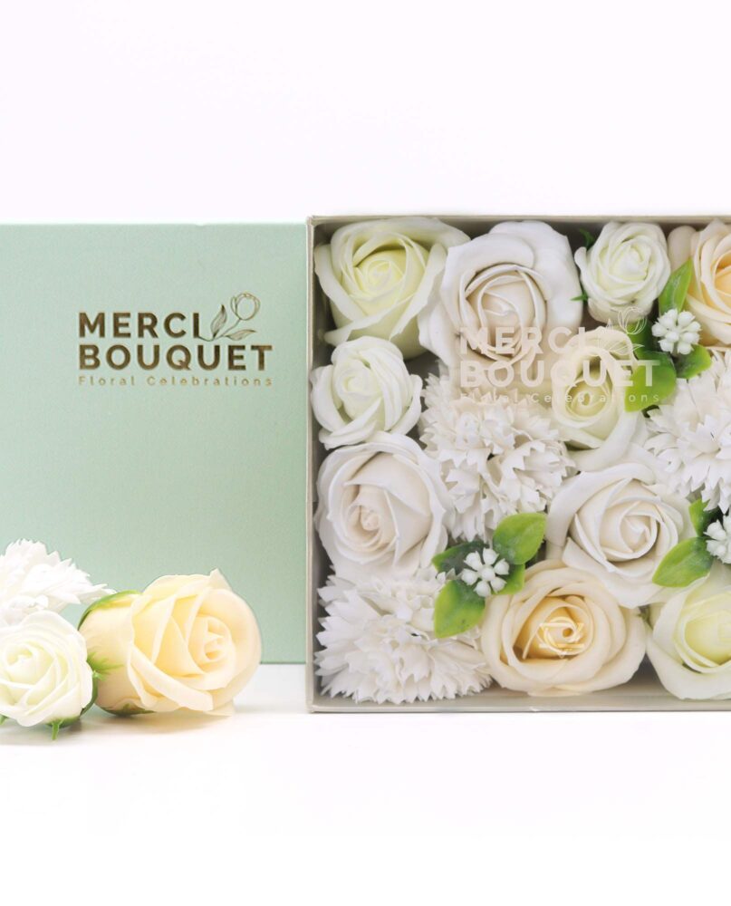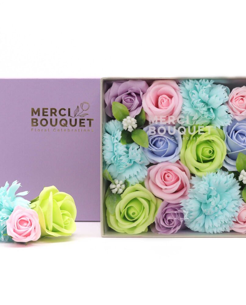 Embrace the beauty of new beginnings and the innocence of a newborn with Soap Flower Gift Square Box in Baby Blessings – Blues. This heartwarming gift set is a symbol of love and well-wishes for the precious journey ahead.