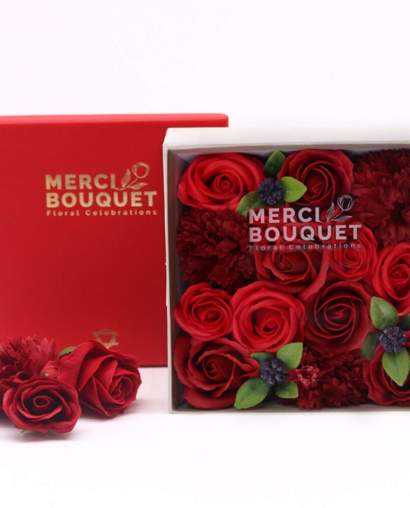 Indulge in the timeless allure of roses with a Soap Flower Gift Round Box, featuring Classic Red Roses. This square box is a testament to the enduring beauty of these iconic blooms.