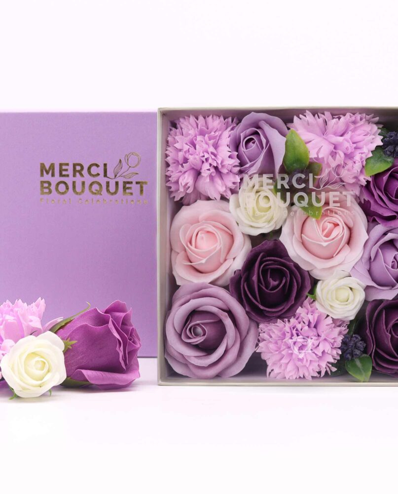 £17.00CompareSoap Flower Gift Round Box – Square Box – Purple Roses & Carnations