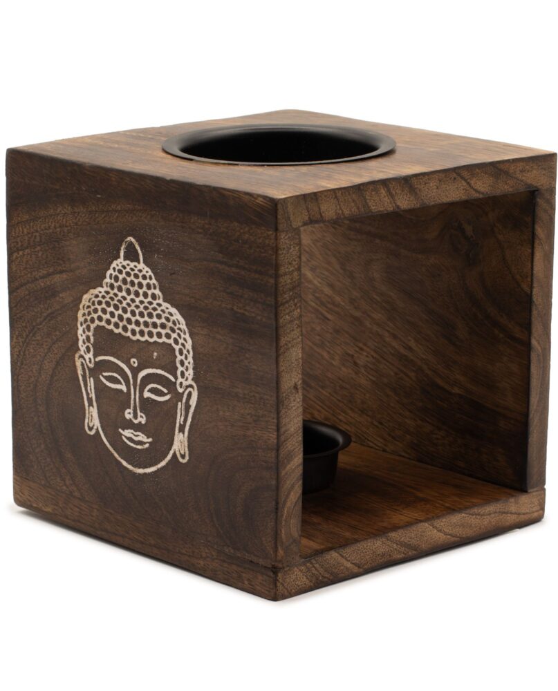 £10.00CompareThe Large Square Mango Wood Oil Burner featuring a Buddha Face is an exquisite piece designed to bring a sense of serenity and enlightenment to any environment. Hand-carved from mango wood, this larger-format burner offers a more substantial presence, making it an ideal centrepiece for meditation spaces or living rooms.