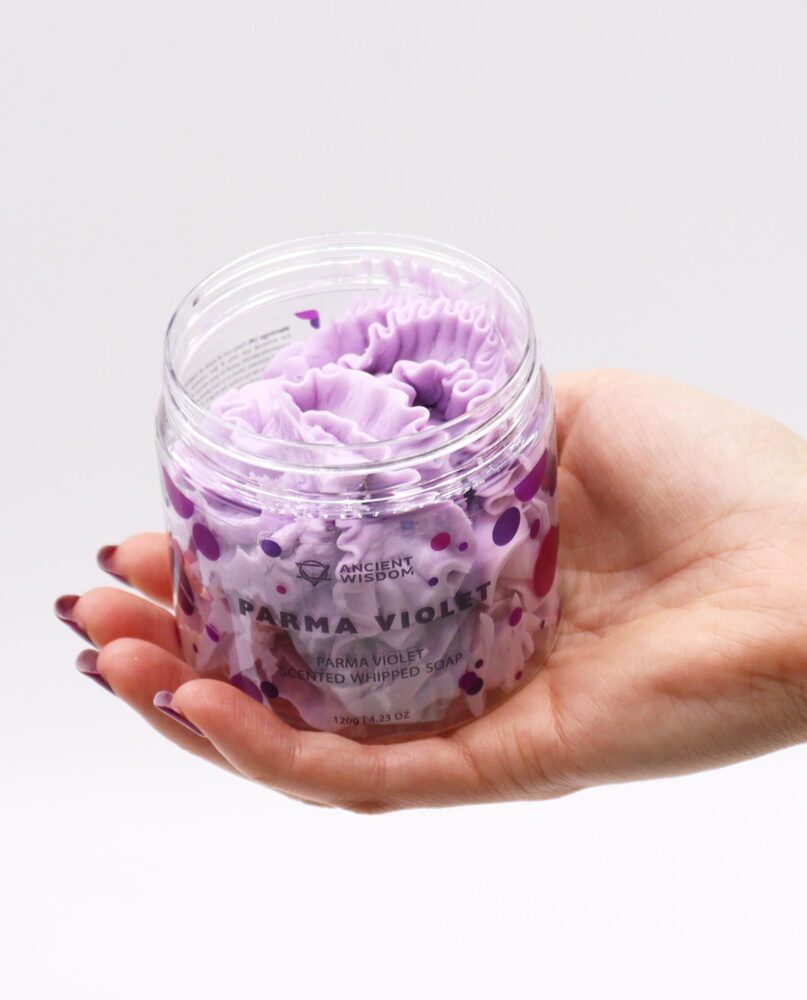 This delightful Violet Paradise Whipped Soap is perfect for indulging in a luxurious bath experience. Immerse yourself in the captivating scent of Parma violets and pamper your skin with this velvety soft soap.