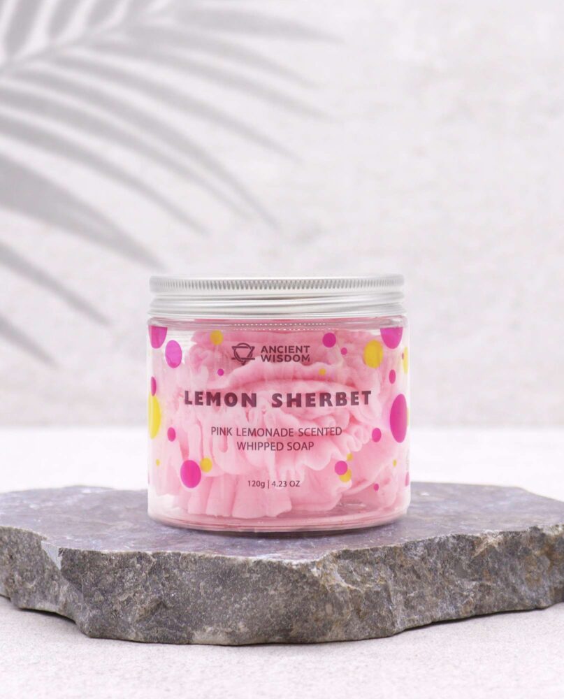 Exquisite Lemon Sherbet Whipped Soap – Experience the refreshing and tangy aroma of pink lemonade while treating your skin to a luxurious and invigorating bathing experience.