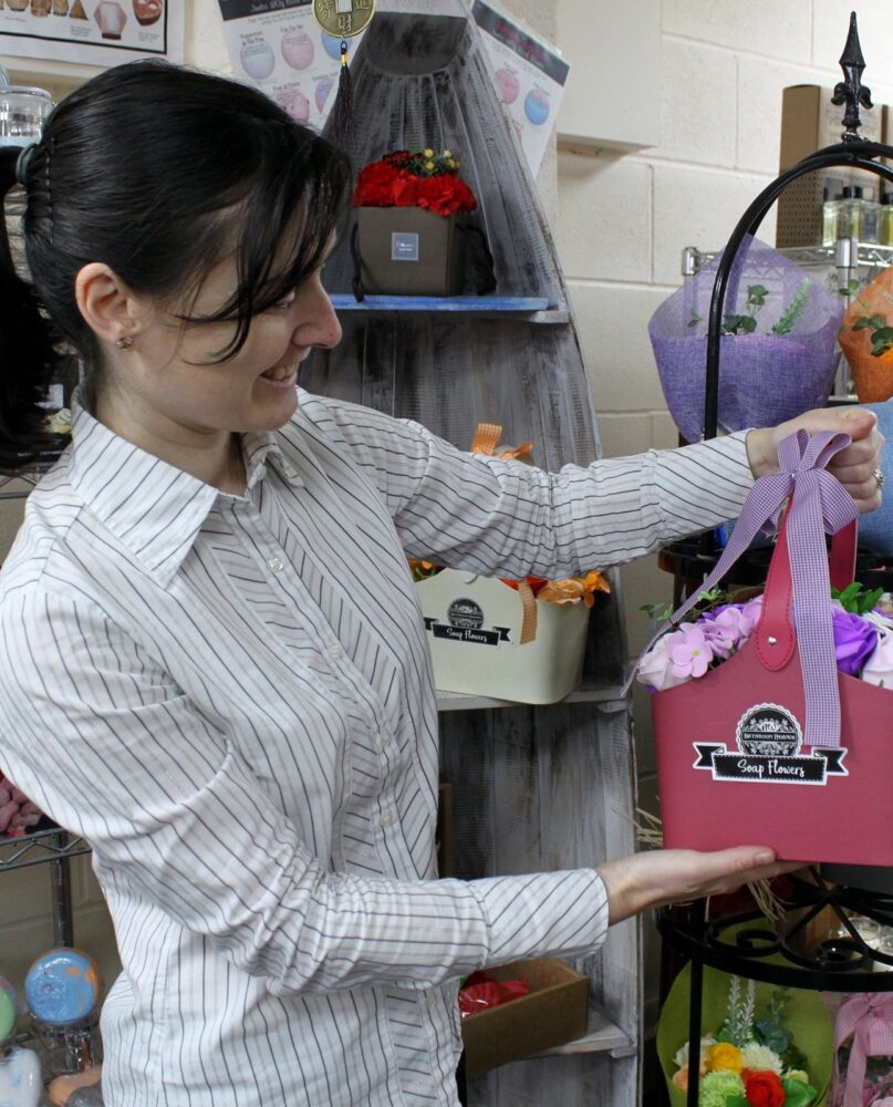 Bouquets are artistically arranged and beautifully presented in a gift bag. There are 6 coloured themed bouquets. Each bouquet contains 9 delicately scented bath roses and 2 bath carnations.
