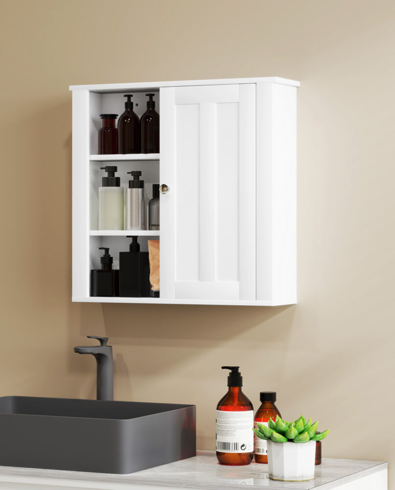 Create a stylish and organised bathroom with this kleankin mirror bathroom cabinet, which blends storage function and elegance. Designed to support your daily routine and neatly store essentials, its melamine finish and cushioned door provide durability and convenience. Features: Space-saving, wall-mounted design The exterior mirror is excellent for makeup or shaving 3-level adjustable shelf to…