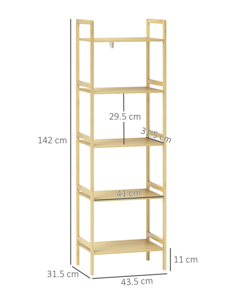 This bathroom shelf unit is a simple and spacious piece, for keeping all essentials in one spot. Made from bamboo, it is naturally strong and moisture resistant. Comes with five shelves so there’s plenty of storage; with nine available levels to set each shelf to a position of your choice. Features: Five shelves adjust to…