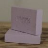 Soap slices are sold wrapped in waxed paper with an ingredients label and weigh approximately 100g.