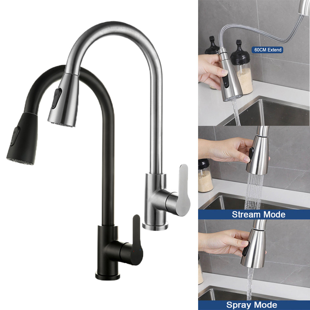 *Pull down sprayer with long hose can easily cove the entire sink.