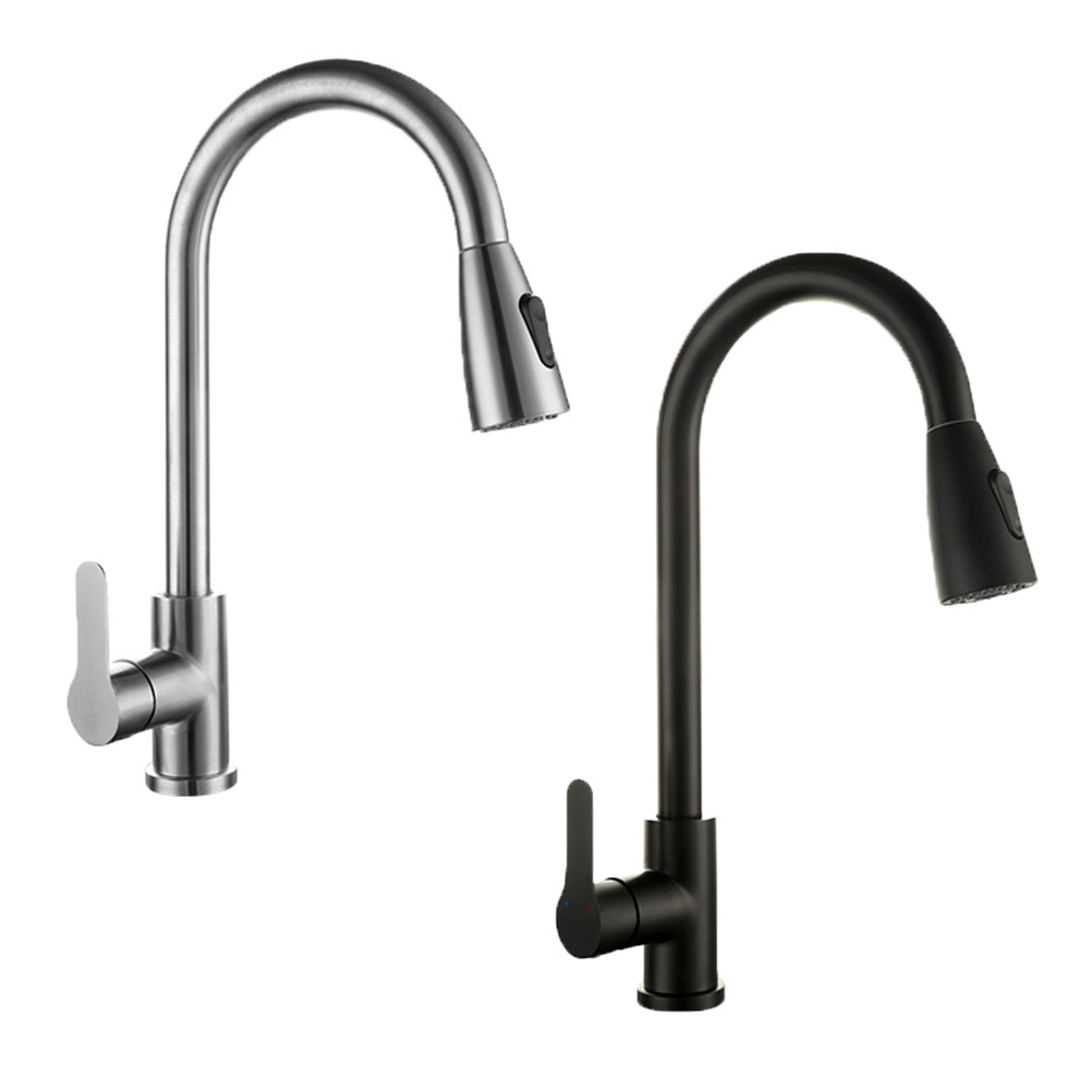 *Pull down sprayer with long hose can easily cove the entire sink.