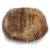 Soap dish made of petrified wood. The colour of petrified wood does not result from the tree species or the colour of the wood of a living plant, but is due to the presence of minerals that have penetrated into the silica mineralizing the debris. The upper part of this soap dish has been smoothly polished, the edges are left raw.