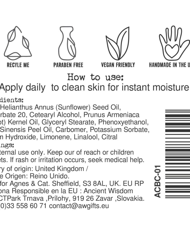 Bright, fresh and gently uplifting, Clementine brings a burst of citrus warmth to everyday skincare. This hand and body cream is designed for regular use, leaving skin feeling soft, comfortable, and lightly fragranced without heaviness.