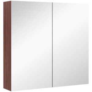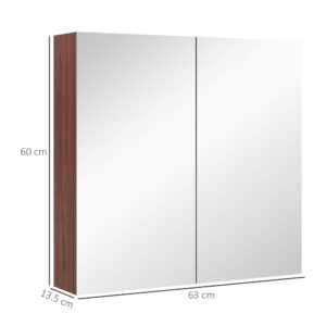 Kleankin Double Door Bathroom Mirror Cabinet, Wall Mounted Bathroom Storage Cabinet, Soft Closing, 63L X 60Hcm