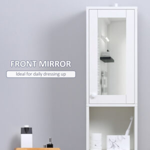 Kleankin Tall Bathroom Storage Cabinet With Mirror, Narrow Bathroom Unit, Freestanding Bathroom Cupboard With Adjustable Shelves And 2 Doors, White