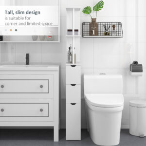 Slim Bathroom Storage Cabinet With Drawers, Tall Bathroom Cupboard With 2-Tier Shelf, White